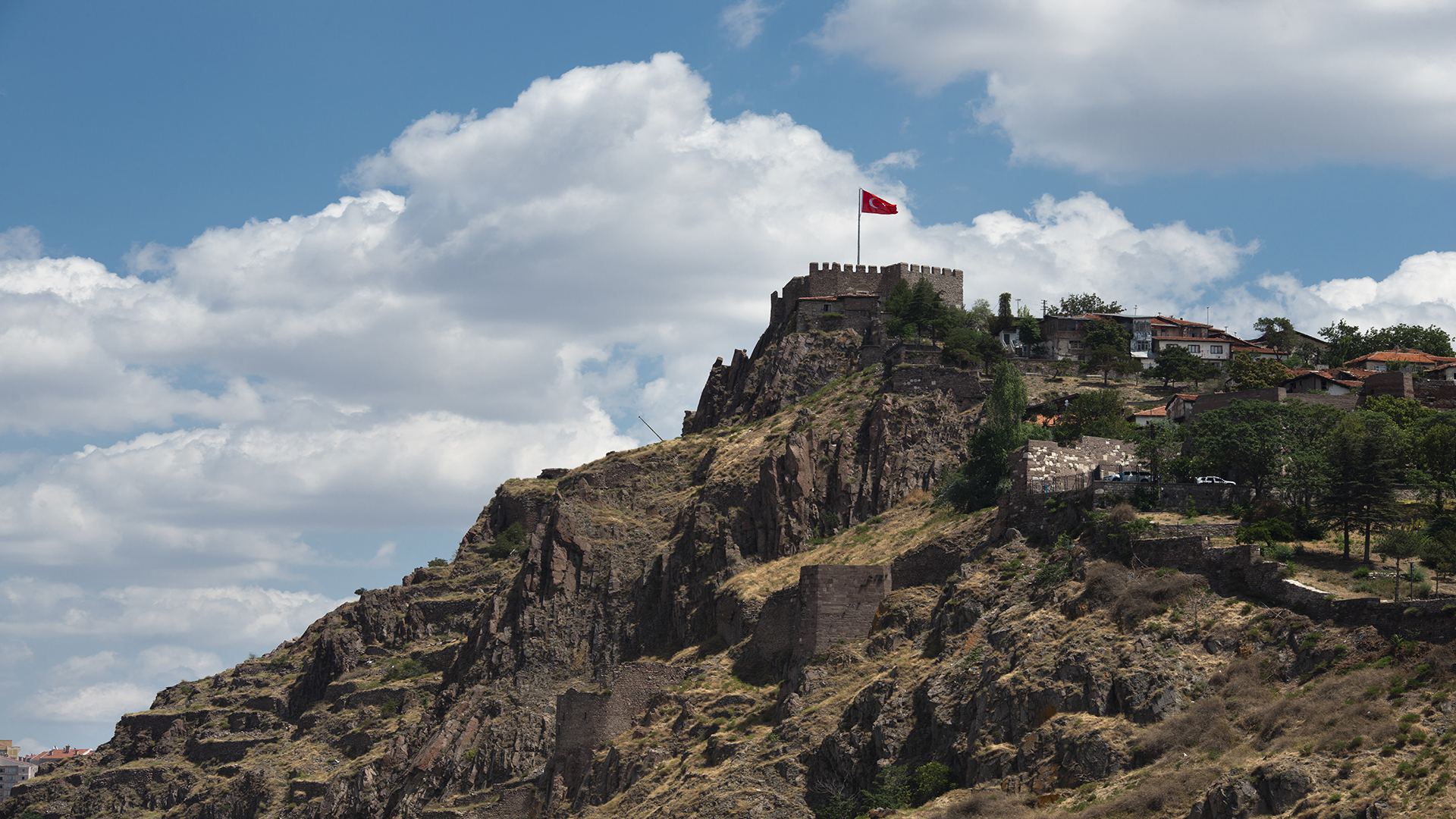 Ankara’ya hâkim bir tepenin üzerinde kurulmuş olan ve zaman içinde kentin simgesi hâline gelmiş Ankara Kalesi’nin ilk yapım tarihi kesin olarak bilinmemektedir. M.Ö. II. yüzyılda Galatlar zamanında var olduğu bilinen Kale, Romalılar Dönemi’n de onarım görmüştür. İç ve dış kale olmak üzere iki kısımdan oluşan yapının iç surları büyük bir olasılıkla 7. yüzyılda Bizanslılar tarafından inşa edilmiştir. Arap saldırıları sırasında çok tahrip olan Kale’nin surları 9. yüzyılda Bizanslılar tarafından yeniden onarılmıştır. Dış surların ne zaman eklendiği kesin olarak saptanamamıştır. Kale, 1073 yılında Selçukluların eline geçmiş, Osmanlı Dönemi’nde çeşitli onarımlar görmüş, son yıllarda yapılan yenileme çalışmalarıyla sağlamlaştırılmıştır. Dış kalede dörtgen şeklinde 20 kule bulunmaktadır. Batıda “Dış Kale Kapısı” ve güneyde “Hisar Kapısı” olmak üzere iki kapısı vardır. Hisar Kapısı’nın üzerinde İlhanlılar Dönemi’ne ait 1330 tarihli Farsça bir yazıt bulunmaktadır. Şekil olarak dikdörtgeni andıran iç kale, kısmen Ankara taşı, kısmen de karışık malzemeden yapılmıştır. İç kale, yükseklikleri 14–16 metre arasında değişen beşgen şeklinde 42 kuleden oluşmaktadır. Kale içindeki Osmanlı Dönemi’nden kalan Ankara evleri ve Alaaddin Camii hâlen ayaktadır (1197).